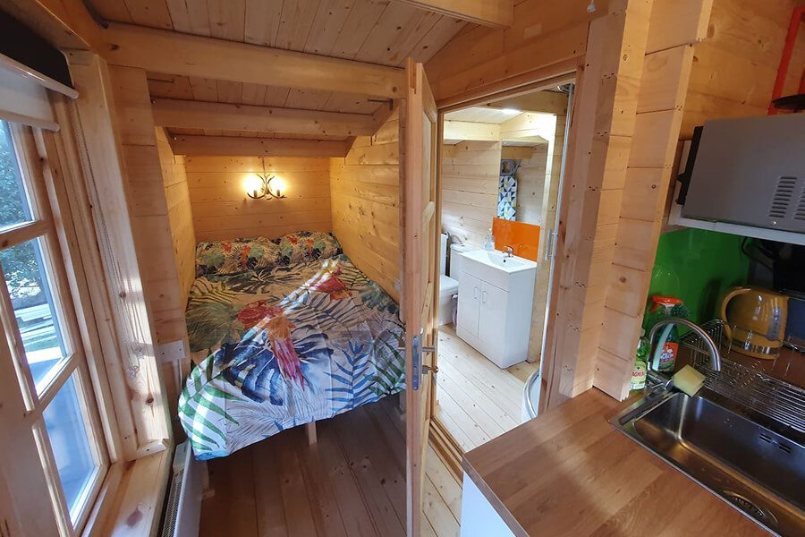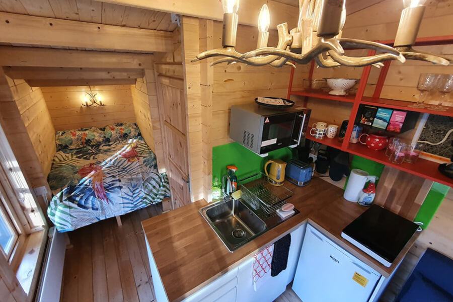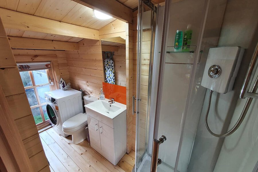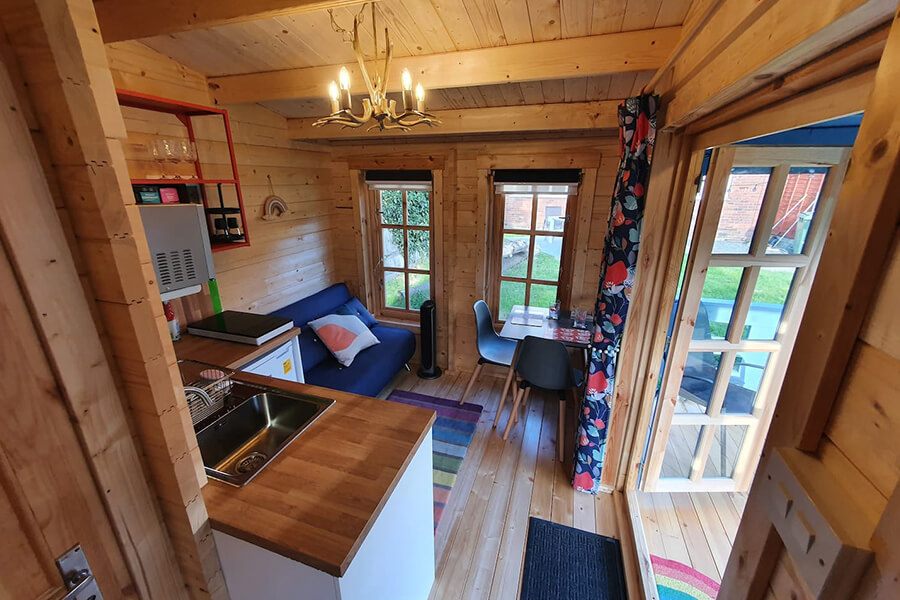 Bij het inrichten van het interieur en exterieur van een tuinhuis zijn de mogelijkheden werkelijk eindeloos. AJ vertelde ons dat hij veel tijd, aandacht en toewijding heeft gestoken in het ontwerp van de binnenruimte van de Blue Haven Studio Lodge. Maandenlang werkte hij aan de ideale indeling van de keuken en badkamer, bepaalde hij de positie van de binnenwanden en zocht hij naar een slimme manier om een comfortabel bed in een nis te plaatsen, een nis die hij zelf bouwde met reststukken hout van het tuinhuis. Een duurzame, creatieve en milieubewuste manier om het beschikbare materiaal optimaal te benutten. Wij zijn oprecht geïnspireerd door de toewijding en liefde waarmee dit tuinhuis is ingericht en afgewerkt.