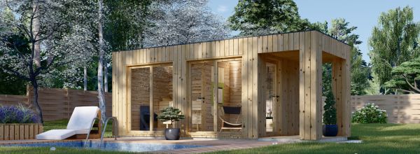 Buitensauna met kleedkamer DELLA (34 mm + gevelbekleding), 4,6 x 2,6 m, 9,3 m², terras 3,6 m²